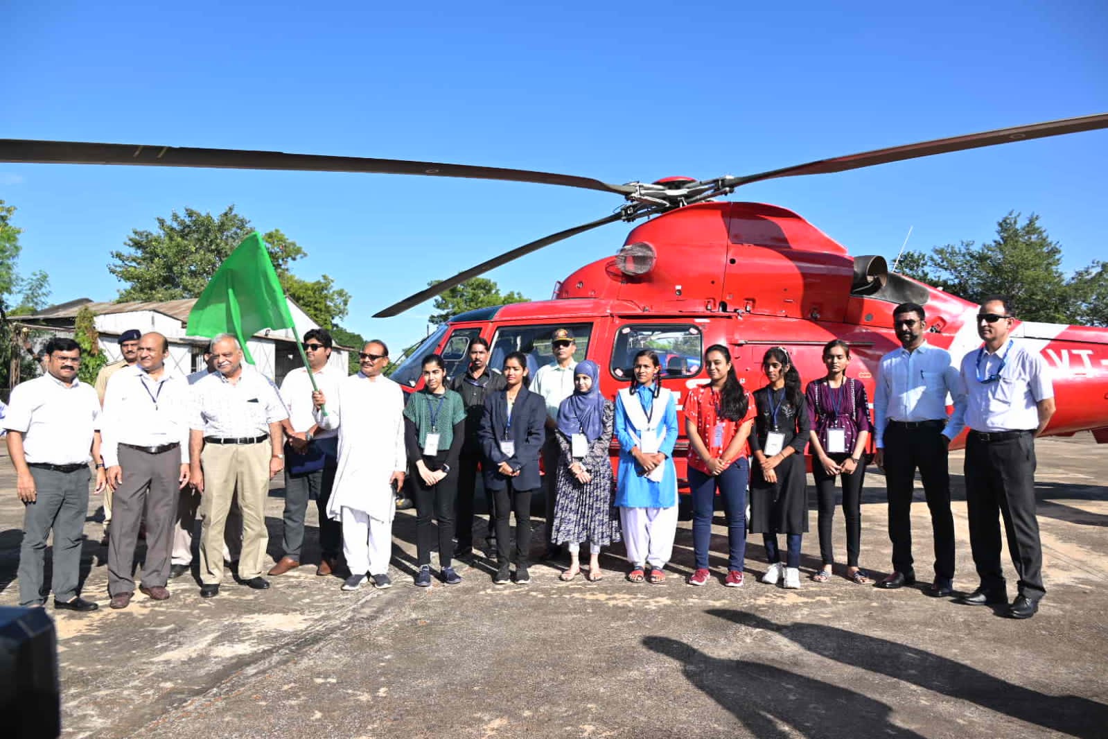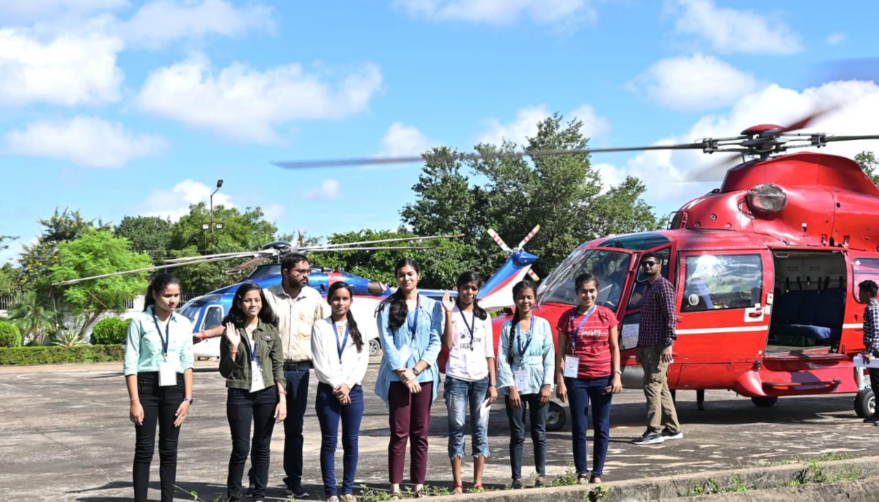 मुख्यमंत्री भूपेश बघेल की घोषणा पर अमल, मेधावी छात्र-छात्राओं को कराई गई हेलीकॉप्टर की सैर