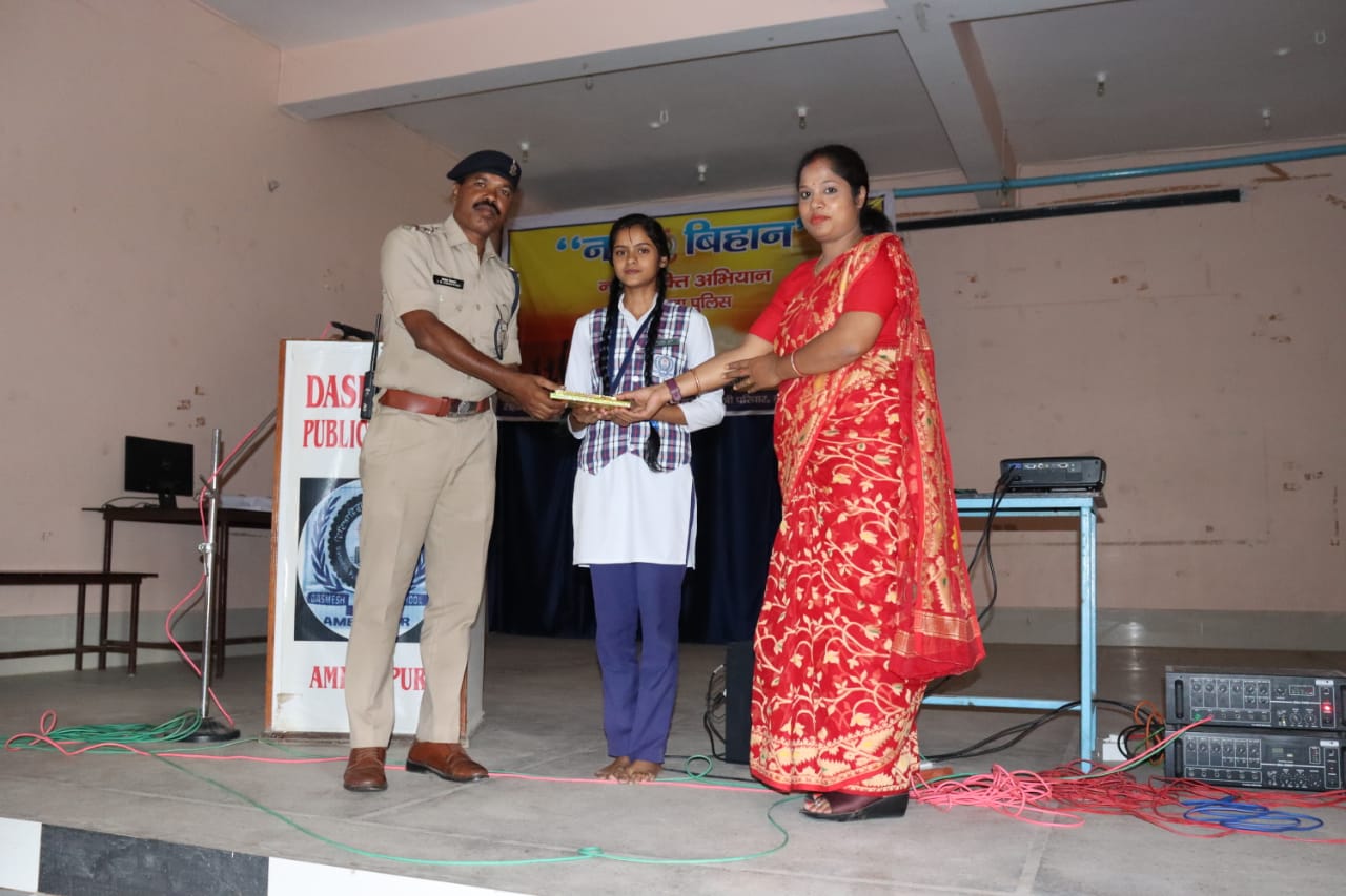 इसी तारतम्य में आज दिनांक 11/10/22 को अतिरिक्त पुलिस अधीक्षक विवेक शुक्ला, उप पुलिस अधीक्षक एस.एस.पैकरा नगर पुलिस अधीक्षक अखिलेश कौशिक, प्रशिक्षु उप पुलिस अधीक्षक प्रशांत देवांगन के नेतृत्व मे दशमेश स्कूल के छात्र – छात्राओं को जागरूक करने हेतु जागरूकता कार्यक्रम आयोजित किया गया, कार्यक्रम मे उप पुलिस अधीक्षक एस.एस. पैकरा द्वारा स्कूली छात्र छात्राओं को सरगुजा जिले की मुहिम अभिव्यक्ति ऐप, और विशेष अभियान नवा बिहान के संबंध में अवगत कराया गया एवं छात्र छात्राओं को प्रोत्साहित किया।