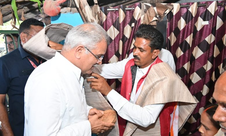 यहां भोजन पर मुख्यमंत्री को छत्तीसगढ़ की समृद्ध परंपरा अनुसार फूलकांस के बर्तन में परोसा गया। छत्तीसगढ़िया व्यंजन जिमी कांदा, लाल भाजी गुमी भाजी, चावल आटा का चीला, बिजौरी इड़हर की सब्जी विशेष रूप से परोसा गया। इसके अलावा गांव में ही उत्पादित फूटू (मशरूम), पनीर की सब्जी भी परोसी गई है।
