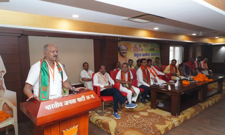 भाजपा रायपुर लोकसभा संयुक्त प्रकोष्ठ की बैठक प्रत्याशी बृजमोहन ने किया संबोधित