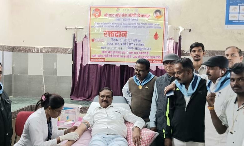 विश्रामपुर -साईं जन्मोत्सव सप्ताह मे आज किया गया रक्तदान