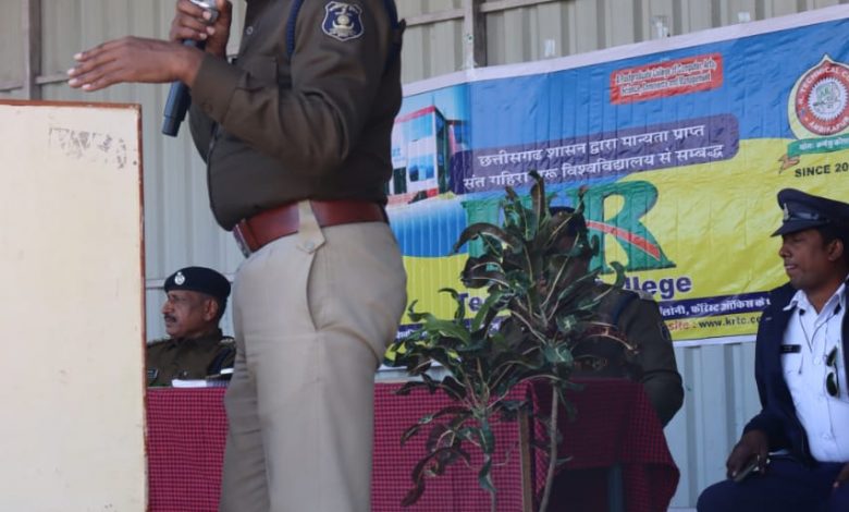 सरगुजा पुलिस द्वारा के. आर. टेक्निकल कॉलेज मे यातायात जागरूकता कार्यक्रम का आयोजन।