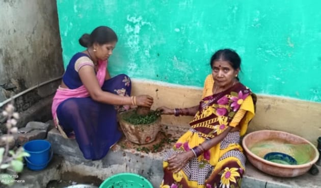 मैनपुर : लालभाजी व पलाश के फ़ूल से स्व. सहायता समूह की महिलाएं बना रही हर्बल गुलाल l