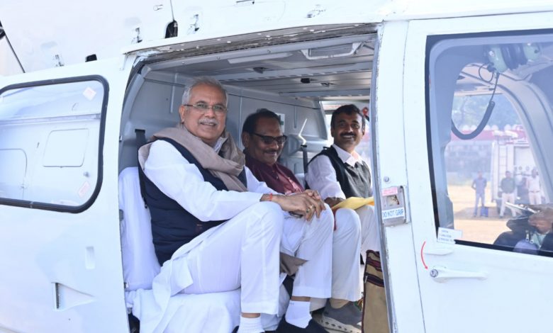 मुख्यमंत्री भूपेश बघेल रायपुर पुलिस लाईन हेलीपेड से बलौदाबाजार-भाटापारा जिले के ग्राम सोनाखान के लिए रवाना