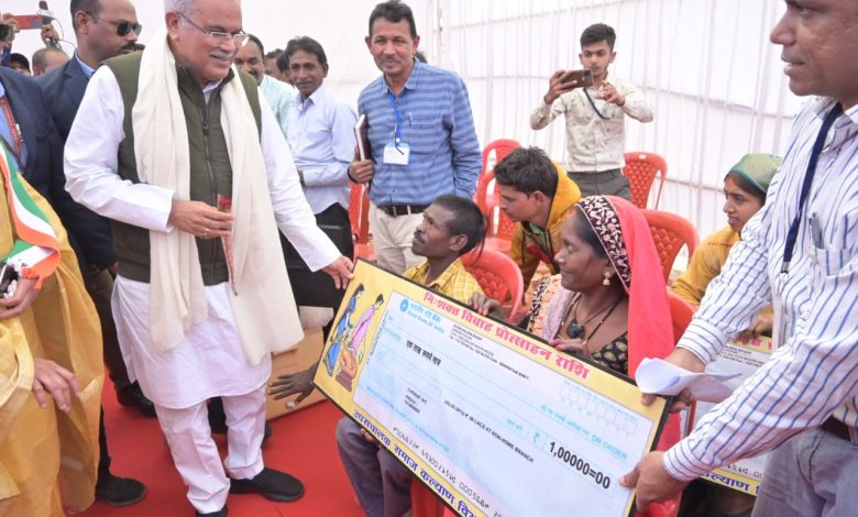 दिव्यांग डोमार और बोधनी को मुख्यमंत्री ने सौंपा एक लाख रुपए का चेक