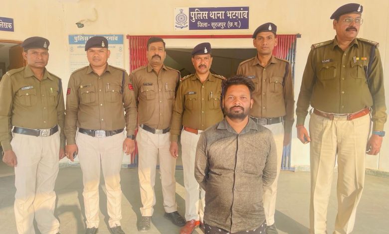 पुलिस अधीक्षक सूरजपुर श्री रामकृष्ण साहू ने मामले में संलिप्त आरोपियों की पतासाजी करते हुए शीघ्र गिरफ्तारी के निर्देश थाना प्रभारी भटगांव शरद चन्द्रा को दिए थे। अतिरिक्त पुलिस अधीक्षक मधुलिका सिंह व डीएसपी मुख्यालय नंदिनी ठाकुर के मार्गदर्शन में थाना भटगांव की पुलिस आरोपियों की धरपकड़ हेतु लगातार दबिश दे रही थी इसी बीच मुखबीर की सूचना पर घटना के मुख्य आरोपी पप्पू निशाद पिता श्याम सुन्दर निशाद उम्र 35 वर्ष निवासी बाजारपारा, थाना भटगांव को घेराबंदी कर शनिवार को पकड़ा गया। पूछताछ पर आरोपी ने घटना को अंजाम देना स्वीकार किया, मामले में आरोपी को विधिवत् गिरफ्तार किया गया। इस कार्यवाही में थाना प्रभारी भटगांव शरद चंद्रा, प्रशिक्षु डीएसपी दीपमाला कुर्रे, एसआई सी.पी.तिवारी, बृजमोहन गुप्ता, प्रधान आरक्षक संजय चौहान, पूरन राजवाड़े, आरक्षक ताराचंद यादव, शैलेश राजवाड़े, प्रहलाद पैंकरा, गिरजा शंकर, रजनीश पटेल, प्रकाश साहू, मनोज जायसवाल, संतोष जायसवाल, व भुनेश्वर पाटले सक्रिय रहे।