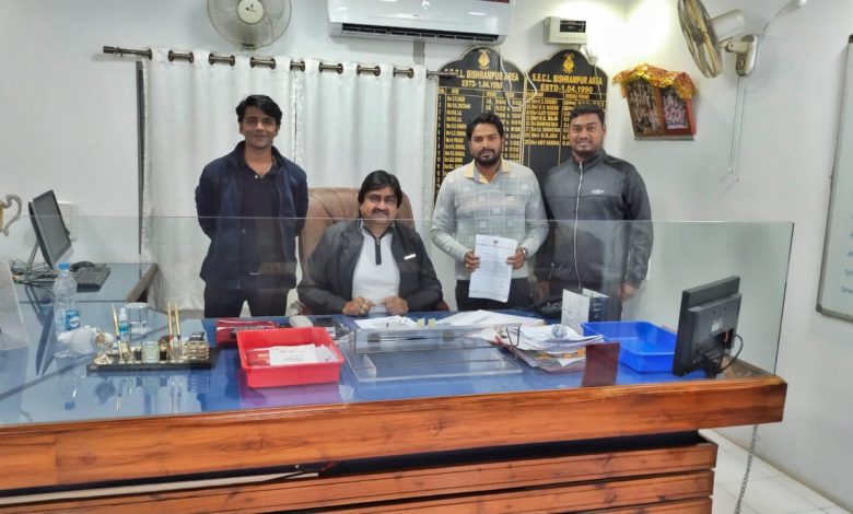 बिश्रामपुर -बिश्रामपुर एससीसीएल महाप्रबंधक से मुलाकात कर प्राइवेट कंपनियों द्वारा संचालित खदानों में 40%जिले के युवाओं को जगह मिले इसके लिए आज युवा मोर्चा जिला उपाध्यक्ष सूरज सेठी ने महाप्रबंधक को ज्ञापन दीया और गायत्री भूमिगत खदान गैनवेल कोमोसेल्स प्राइवेट लिमिटेड कंपनी को मिली है जबकि केतकी भूमिगत खदान सिन्चौती माइनिंग सर्विस प्राइवेट लिमिटेड को व विश्रामपुर और भटगांव में 20-20 मेगावाट सोलर प्लांट लगाया जा रहा है इन सभी परियोजनाओं में जिले के बेरोजगार युवाओं को ही जगह मिले इसके लिए महाप्रबंधक जी से आग्रह कर इन कंपनियों से बात करने को निवेदन किया और यदि ऐसा नहीं होता है आंदोलन करने की चेतावनी भी दी गई। जिसमें आनंद शर्मा, अलंकार नायक, राजकुमार सिन्हा, कुंदन मंडल, रानीत चौबे मौजूद थे