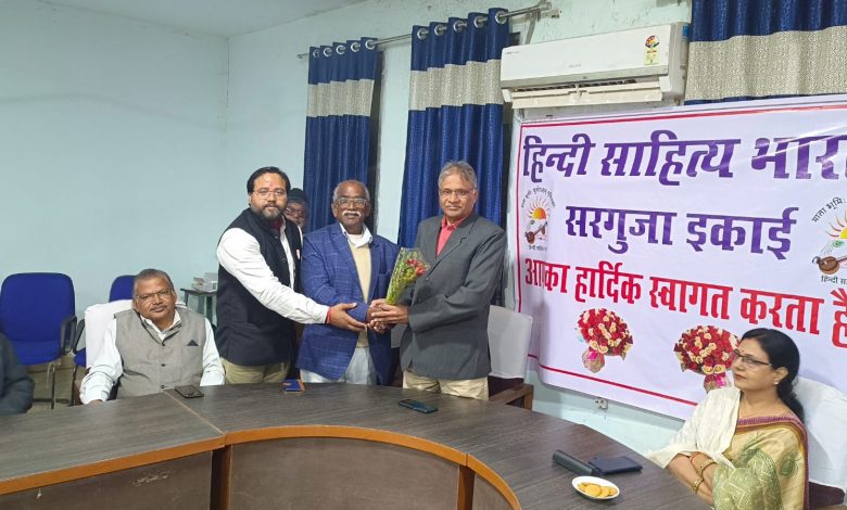 ब्यूरो चीफ/सरगुजा// हिन्दी साहित्य भारती द्वारा स्थानीय पॉलीटेक्निक कॉलेज़ में प्राचार्य डॉ0 आरजे पाण्डेय की अध्यक्षता में सरस काव्य-संध्या का आयोजन किया गया। कार्यक्रम के मुख्य अतिथि संस्था के प्रदेशाध्यक्ष बलदाऊ राम साहू और विशिष्ट अतिथि प्रदेश महामंत्री व प्राचार्य डॉ0 सुनीता मिश्रा, अजय चतुर्वेदी, मीना वर्मा व रामसेवक गुप्ता थे। गोष्ठी का शुभारंभ मां भारती की पूजा पश्चात् वरिष्ठ कवयित्री मीना वर्मा द्वारा प्रस्तुत सरस्वती-वंदना से हुआ। बलदाऊ राम साहू ने कहा कि कवियों को साहित्य-सृजन राष्ट्र-निर्माण के लिए करना चाहिए क्योंकि राष्ट्र ही हमारी पहचान है। देशहित हमारे चिंतन का आधार हो। साथ ही समकालीनता का ध्यान कवि-लेखकों को रखना होगा क्योंकि समकालीन साहित्य ही सम्मान पाता है। कबीर, तुलसी, प्रेमचंद आदि महान साहित्यकारों के लेखन में समकालीनता दृग्गोचर होती है इसीलिए वे आज भी प्रासंगिक हैं। कुछ लोग देश की परंपरा, रीति-रिवाज़ों, एकता और अखण्डता को तोड़ना चाहते हैं। ऐसी ताक़तों से साहित्यकारों को लड़ना होगा। मां और मातृभूमि का सम्मान करना आज सभी का कर्तव्य है। डॉ0 सुनीता मिश्रा ने हिन्दी साहित्य भारती को एक अंतरराष्ट्रीय संस्था बताते हुए कहा कि यह संस्था विश्व के तीस देशों में संचालित है और अपना कार्य पूरी ईमानदारी व निष्ठा से कर रही है। भारत के प्राचीन वैभव की परिकल्पना को साकार करना, देश को फिर से विश्वगुरु का दर्जा दिलाना, पाश्चात्य संस्कृति हो हराकर भारतीय संस्कृति की ओर लोगों को लौटाना व अतीत-वर्तमान का अभिनंदन करना संस्था के कुछ प्रमुख उद्देश्य हैं। प्राचार्य डॉ0 आरजे पाण्डेय ने राजनीति के कारण कवियों को अपेक्षित सम्मान नहीं मिल पाने की बात कही और तकनीकी शिक्षा व चिकित्सा शिक्षा की पढ़ाई हिन्दी में किए जाने संबंधी शासकीय प्रयासों व तैयारियों की भी जानकारियां दीं। संस्था के जिलाध्यक्ष रंजीत सारथी ने वर्तमान समय में हिन्दी को पूरे देश में जन-जन की भाषा बनाए जाने की आवश्यकता प्रतिपादित की।