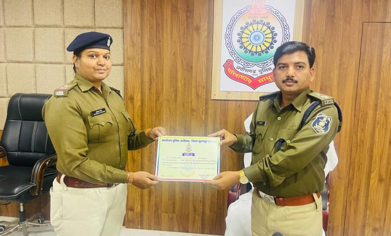 थाना ओड़गी व चौकी चेन्द्रा में पंजीबद्ध तीन मामले में जिनमें अपहरण, हत्या का प्रयास एवं हत्या के मामले में अच्छी विवेचना कर आरोपियों को माननीय न्यायालय से सजा दिलाने पर पुलिस अधीक्षक श्री रामकृष्ण साहू (भा.पु.से.) ने थाना प्रतापपुर में पदस्थ एसआई आराधना बनोदे को नगद पुरस्कार एवं प्रशस्ति पत्र देकर सम्मानित किया।