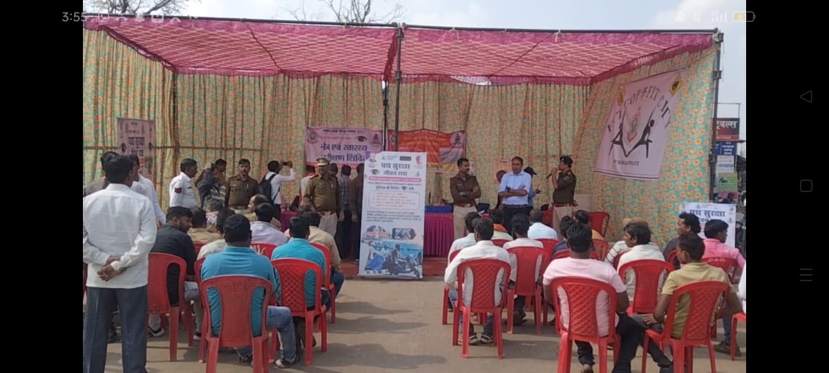 पुलिस महानिरीक्षक सरगुजा रेंज राम गोपाल गर्ग (भा.पु.से.) के सतत मार्गदर्शन मे पुलिस अधीक्षक सरगुजा श्रीमती भावना गुप्ता (भा.पु.से.) के निर्देशन मे सरगुजा पुलिस द्वारा 11 जनवरी से लेकर 17 जनवरी तक सड़क सुरक्षा सप्ताह अंतर्गत “पथ सुरक्षा – जीवन रक्षा” अभियान चलाकर विभिन्न कार्यक्रम आमनागरिकों के हित मे आयोजित किये जा रहे हैं, इसी क्रम मे आज दिनांक को अतिरिक्त पुलिस अधीक्षक श्री विवेक शुक्ला, नगर पुलिस अधीक्षक श्री स्मृतिक राजनाला( भा.पु.से.) के नेतृत्व मे न्यू बस स्टैंड अम्बिकापुर मे सरगुजा पुलिस द्वारा सड़क दुर्घटनाओ मे कमी लाने के उद्देश्य से ऑटो चालकों, बस चालकों एवं ट्रक चालकों सहित अन्य मालवाहक वाहनो के चालकों, परिचालको का नेत्र एवं स्वास्थ्य परिक्षण शिविर का आयोजन किया गया।