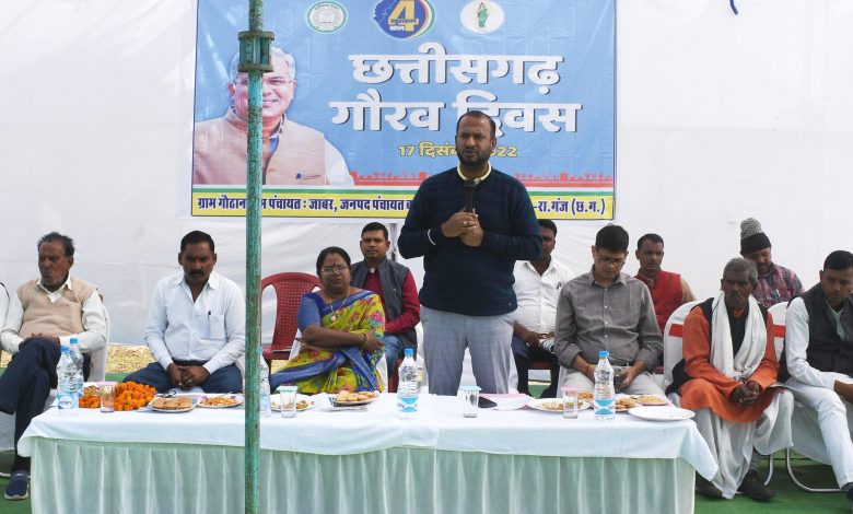 बलरामपुर 17 दिसम्बर 2022/ मुख्यमंत्री श्री भूपेश बघेल के नेतृत्व में राज्य सरकार के 04 वर्ष का कार्यकाल पूरा होने पर पूरे राज्य सहित जिले के 330 गौठानों, चिन्हांकित धान खरीदी केन्द्रों, वन विभाग के वन वाटिका में गौरव दिवस मनाया गया। गौरव दिवस के उपलक्ष्य में मुख्यमंत्री भूपेश बघेल ने वीडियो कॉन्फ्रेंसिंग के माध्यम से प्रदेशवासियों को संबोधित करते हुए शुभकामनाएं दी।
