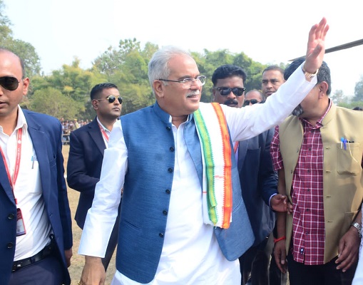 साथी ग्रामीणों ने तेंदू फल और सूत धागा के माला पहनाकर मुख्यमंत्री बघेल का अभिनंदन किया।