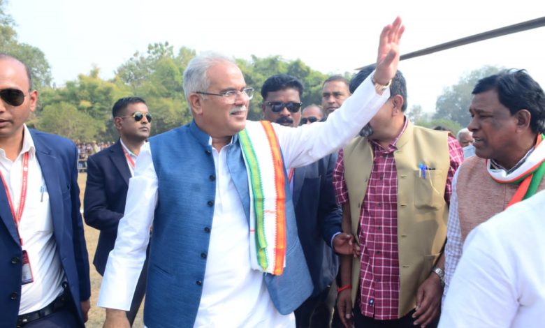 रायपुर : मुख्यमंत्री भूपेश बघेल भेंट-मुलाकात के लिए कोरबा जिले के कटघोरा विधानसभा क्षेत्र के ग्राम नोनबिर्रा हेलीपैड पहुंचे