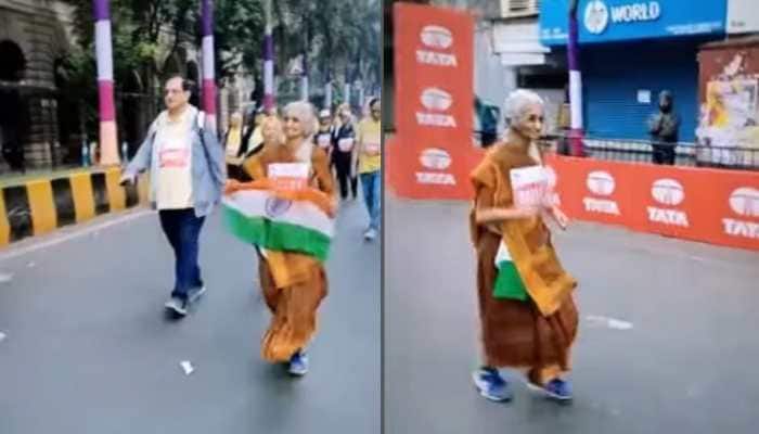 साड़ी और स्नीकर्स में 80 साल की महिला ने दौड़ी मुंबई मैराथन, लोगों ने बताया ‘प्रेरणादायक’