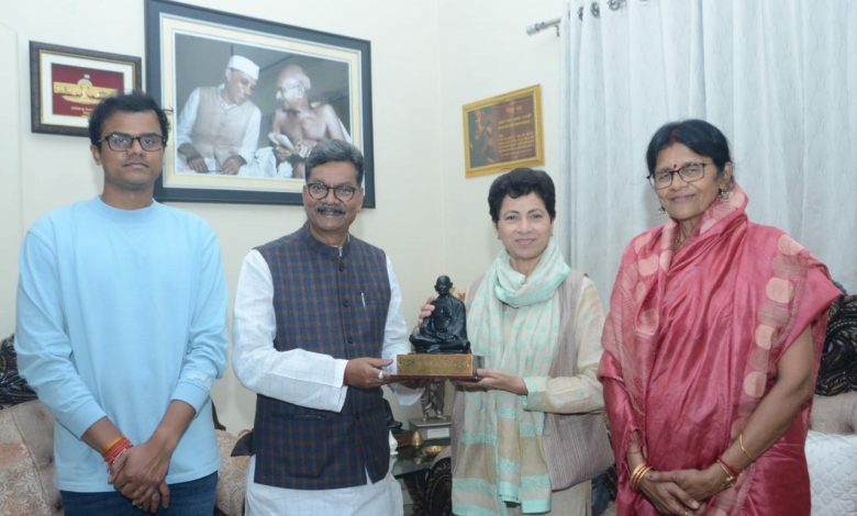 रायपुर छत्तीसगढ़ विधानसभा अध्यक्ष डॉ. चरणदास महंत के निवास सौजन्य भेंट करने पहुँची आईसीसी महासचिव एवं छत्तीसगढ़ प्रभारी कुमारी शैलजा।