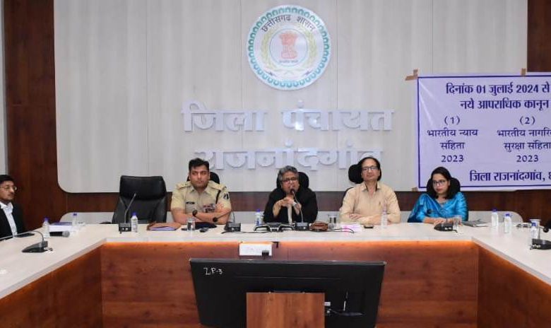 राजनांदगांव// प्रधान जिला एवं सत्र न्यायाधीश श्रीमती सुषमा सावंत ने जिला पंचायत के सभाकक्ष में 1 जुलाई 2024 से लागू होने वाले नये अपराधिक कानूनों के संबंध में न्यायाधीशों, राजस्व, पुलिस प्रशासन एवं अधिवक्तागणों को जानकारी दी। इस दौरान कलेक्टर श्री संजय अग्रवाल, पुलिस अधीक्षक श्री मोहित गर्ग उपस्थित थे। प्रधान जिला एवं सत्र न्यायाधीश श्रीमती सुषमा सावंत ने कहा कि एक जुलाई से भारतीय न्याय संहिता 2023, भारतीय नागरिक सुरक्षा संहिता 2023, भारतीय साक्ष्य अधिनियम 2023 प्रभावी होंगे। उन्होंने कहा कि नये कानून वर्तमान परिप्रेक्ष्य में सरल करने के लिए लाया गया है। नये तीनों कानून, न्याय और नागरिक सुरक्षा के लिए लाए गए हैं। उन्होंने कहा कि नये कानून के साथ हम सकारात्मक दृष्टिकोण के साथ आगे बढ़ेगे तो ज्यादा बेहतर काम कर पाएंगे। उन्होंने 1 जुलाई से लागू होने वाले नये आपराधिक कानून के संबंध में विस्तार से जानकारी दी।