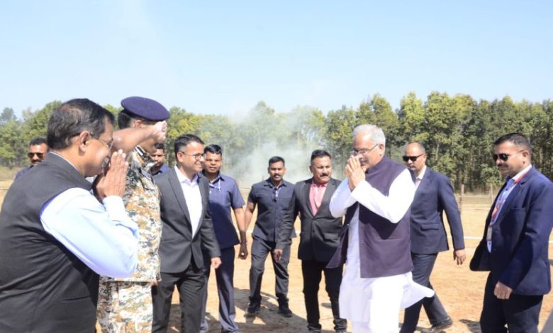 मुख्यमंत्री भूपेश बघेल का गिरोला स्थित अस्थाई हेलीपेड में किया गया आत्मीय स्वागत