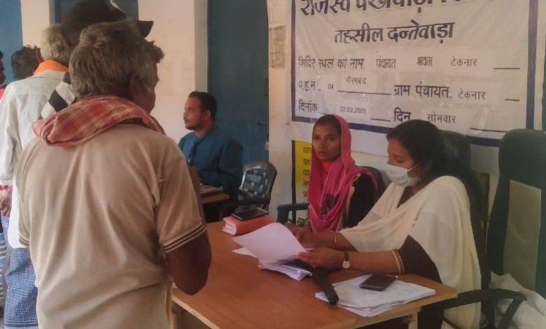 राजस्व आपदा प्रबंधन विभाग द्वारा किसानों को प्रदाय की जाने वाली सेवाओं को ग्राम में ही उपलब्ध कराने तथा इससे संबंधित शिकायतों के त्वरित निराकरण के उद्देश्य से जिलों में राजस्व शिविर का आयोजन किया जा रहा है। दंतेवाड़ा जिले में आयोजित किए गए शिविर में अब तक कुल 5552 आवेदन पत्र प्राप्त किए गए। इनमें मौके पर ही 2249 प्रकरणों का निराकरण किय गया है। दंतेवाड़ा जिले में लगाए गए राजस्व शिविर में फौती के 350, अविवादित नामांतरण 286, विवादित नामांतरण 14, अविवादित बंटवारा 214, विवादित बंटवारा 03, सीमाकंन के 50, निवास प्रमाण पत्र के 333, आय प्रमाण पत्र 203, अस्थाई जाति प्रमाण पत्र के 225 इसी प्रकार बंदोबस्त त्रुटि सुधार के 06, अतिक्रमण 05, भूमि विक्रय से संबंधित शिकायत 11, राजस्व अभिलेखों का अद्ययनीयकरण के 96, भूमि परिवर्तन के प्रकरण 0, आर.बी.सी 6-4 के प्रकरण 04, सड़क दुर्घटना के मामले 02, राजीव गांधी आश्रय योजना के तहत् पट्टा वितरण के 04, अतिक्रमित भूमि का व्यवस्थापन 07, एफ.आर.ए पट्टों का वितरण 81, भू-अभिलेख में सीडिंग हेतु आधार नबर की प्रविष्टि के 212 के प्रकरणों के आवेदन प्राप्त हुये हैं जिनमें से कुल 2249 आवेदन पत्रों का निराकरण किया गया है।