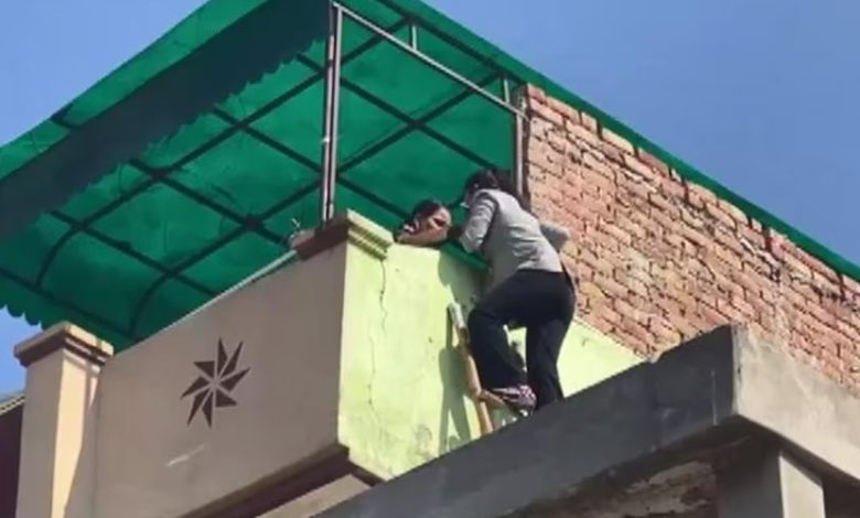 होटल की छत पर चढ़कर भागने की कोशिश