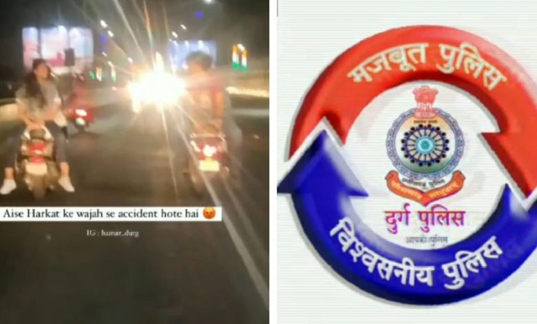 दुर्ग। TWIN CITY के नाम से मशहूर भिलाई-दुर्ग के युवा रूल तोड़ने के मामले में राजधानी के युवाओं को पीछे छोड़ते जा रहे हैं। कुछ दिनों पहले ही बाइक की पेट्रोल टंकी में वाहन चालक युवा के साथ लिपटी हुई युवती का वीडियो जमकर वायरल हुआ और पुलिस ने इस मामले में संबंधित जोड़ों को पकड़कर सबक भी सिखाया था। इसी तरह की मस्ती का एक और वीडियो किसी नागरिक ने खींचकर कमेंट्री करते हुए डाल दिया। यह वीडियो दुर्ग पुलिस को भी भेजा गया। जिसके बाद SP के निर्देश पर संबंधित नम्बरों वाले वाहनों की तलाश शुरू कर दी गई।