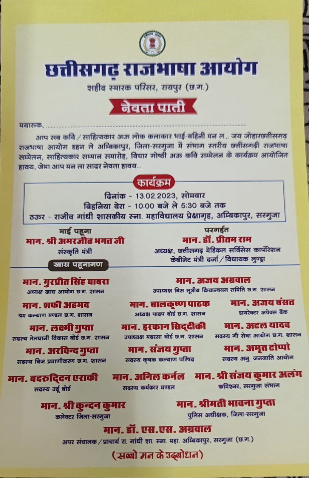 संभाग स्तरीय छत्तीसगढ़ राजभाषा सम्मेलन 13 फरवरी को………… पी0एस0यादव/ब्यूरो चीफ/सरगुजा// छत्तीसगढ़ राजभाषा आयोग द्वारा संभाग स्तरीय छत्तीसगढ़ राजभाषा सम्मेलन एवं…